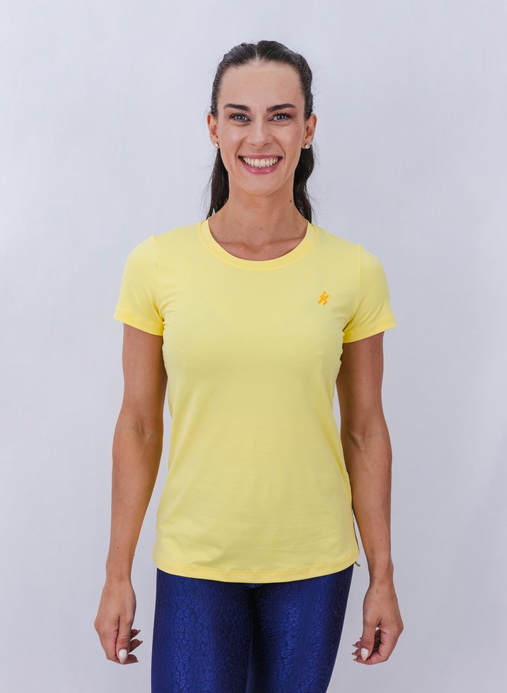 A camiseta Activewear combina praticidade e elegância em um design minimalista. Ideal para treinos, possui recorte alongado na parte traseira e fendas laterais que afinam a silhueta. Experimente conforto e estilo com esta peça essencial que adiciona classe ao seu dia.