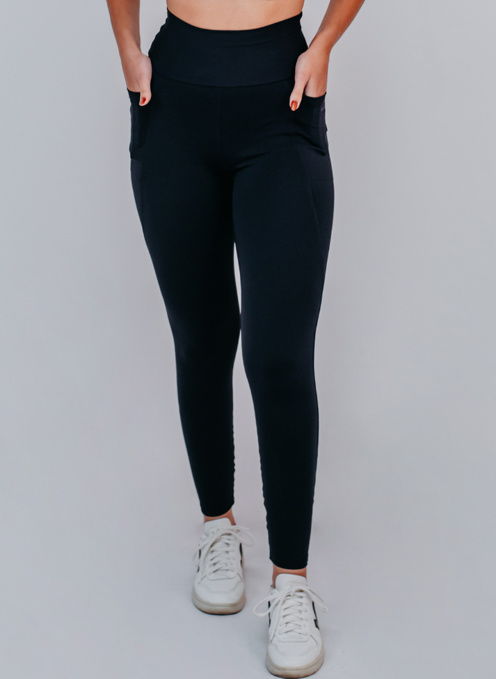 Bolsos profundos nas duas laterais trazendo funcionalidade para os exercícios, que permite levar celular e garrafas de água de até 500ml