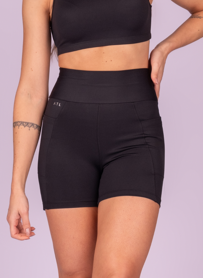 bolsos profundos nas duas laterais trazendo funcionalidade para os exercícios, que permite levar celular e garrafas de agua de ate 500ml