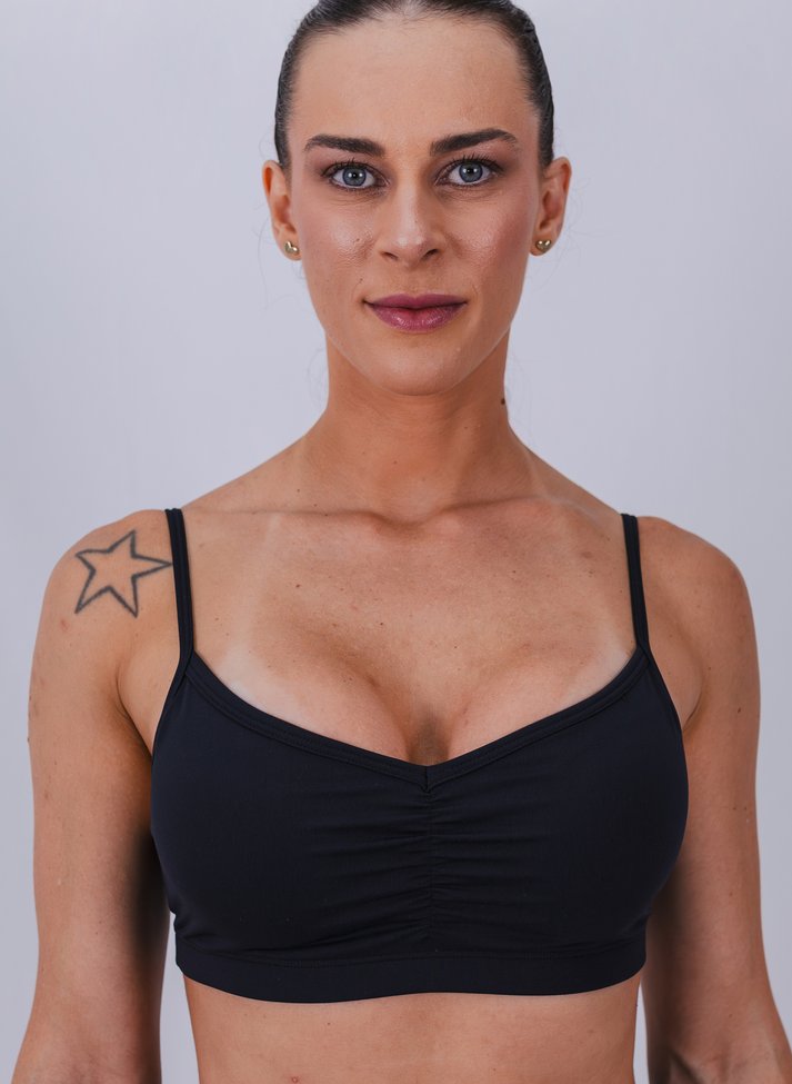 Alças finas oferecem leveza e discrição, mantendo a funcionalidade sem comprometer a liberdade.