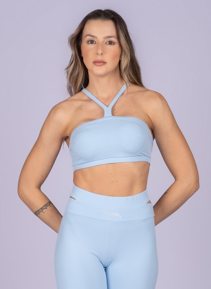 Alças cruzadas elegantes distribuem o peso de forma equilibrada.